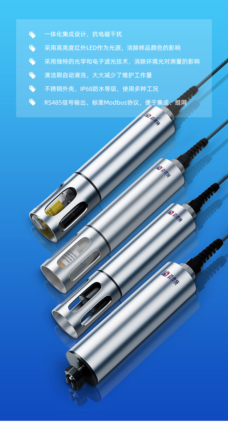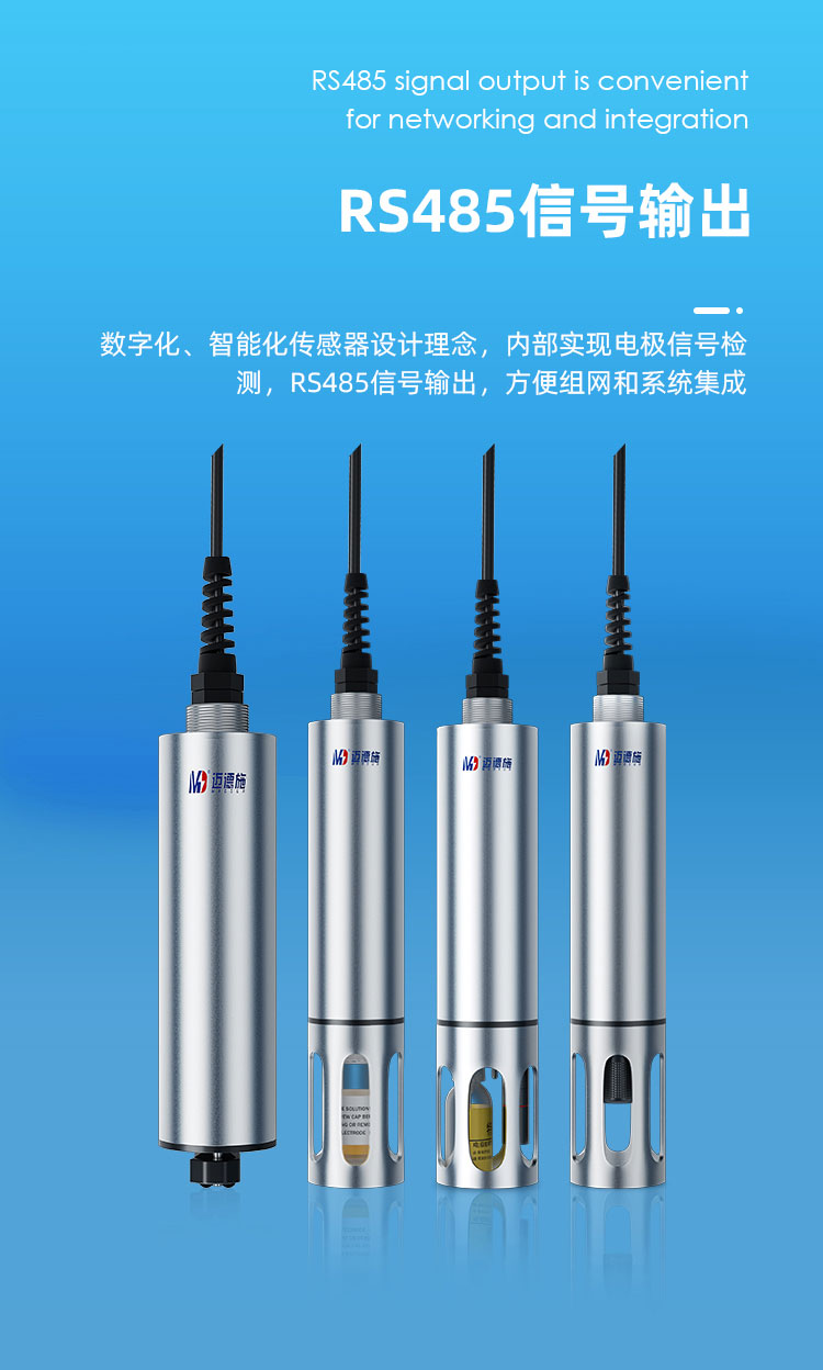 一體化集成設(shè)計,采用工業(yè)在線電極,數(shù)字化、智能化傳感器設(shè)計理念。儀器內(nèi)部實現(xiàn)了電極信號檢測,溫度檢測及自動補償,數(shù)字化信號轉(zhuǎn)換等功能。RS485 信號輸出,方便組網(wǎng)和系統(tǒng)集成,廣泛應(yīng)用于地表水、污染源等行業(yè)。