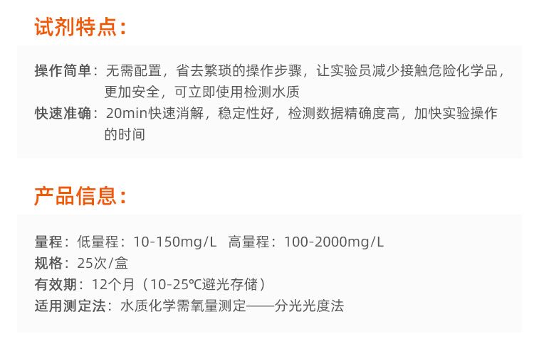 無需另配試劑,產(chǎn)生廢液少,與試劑零接觸,安全放心使用,簡化操作過程,即開即用,極大限度地縮短分析時(shí)間,提高工作效率