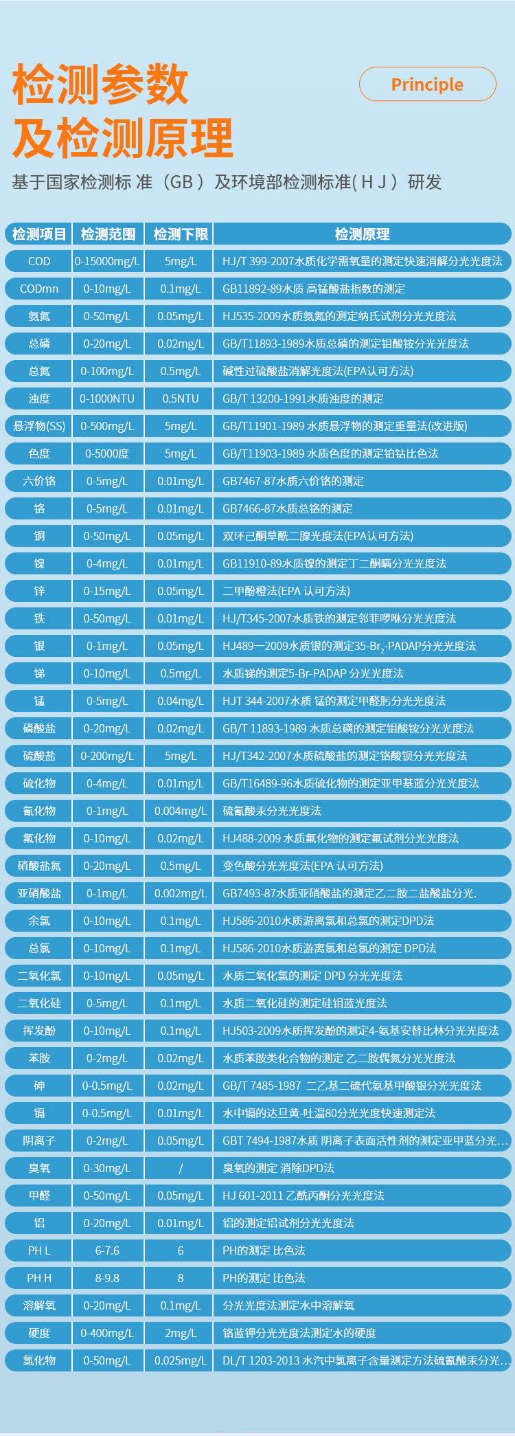 無(wú)需檢測(cè)試劑,讓檢測(cè)更加簡(jiǎn)單、快速、準(zhǔn)確、安全。儀器以其外觀設(shè)計(jì)小巧、檢測(cè)快速、操作簡(jiǎn)單、成本低等特點(diǎn),廣泛應(yīng)用于應(yīng)急監(jiān)測(cè)、污水處理、化工、制藥、醫(yī)院廢水、食品、印染等行業(yè)廢水檢測(cè)方面,還可以應(yīng)用于科研單位、大中專院校等機(jī)構(gòu)的廢水研究使用。