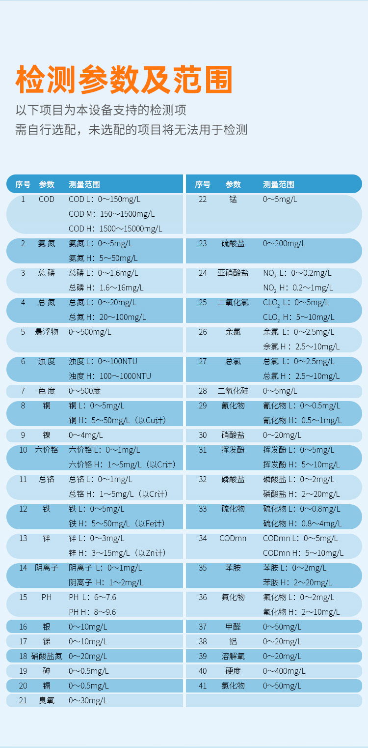5、用戶還可以自行開(kāi)發(fā)用戶程序和試劑,以適應(yīng)不同場(chǎng)合不同水體狀況。