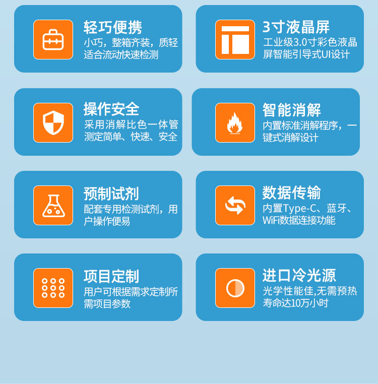 7、操作安全:直接取水樣檢測(cè),無(wú)任何安全隱患。