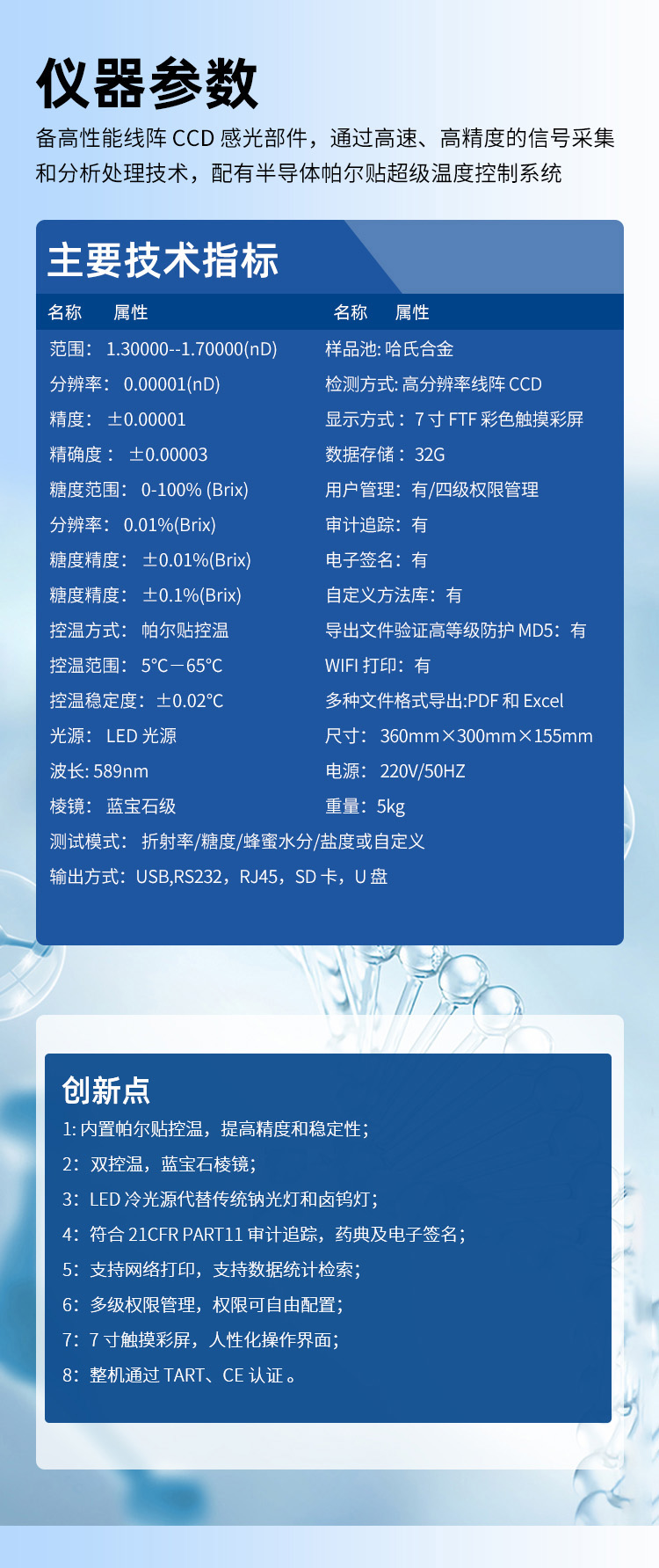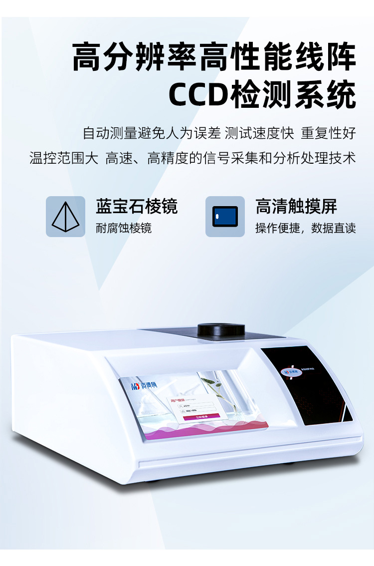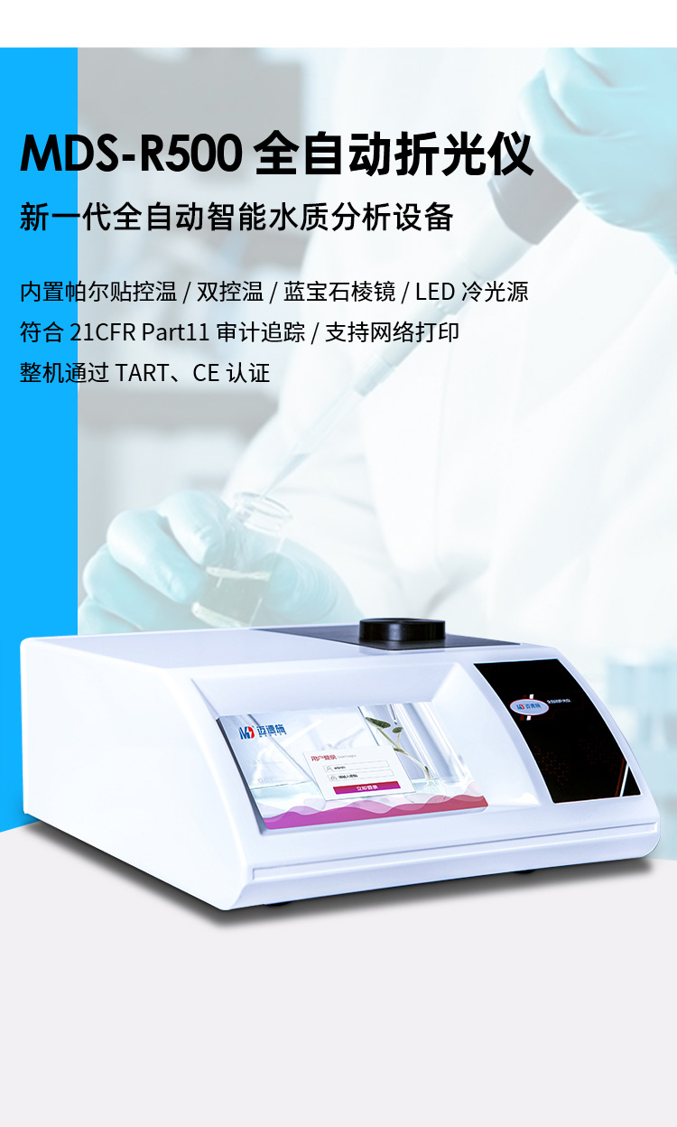 MDS-R系列全自動(dòng)折光儀配備高性能線陣 CCD 感光部件,通過(guò)高速、高精度的信號(hào)采集和分析處理技術(shù),配有半導(dǎo)體帕爾貼超級(jí)溫度控制系統(tǒng)。能高效、高精確測(cè)量透明、半透明、深色、粘稠狀等各類液體的折射率(nD)和糖溶液的質(zhì)量分?jǐn)?shù)(錘度 Brix)。