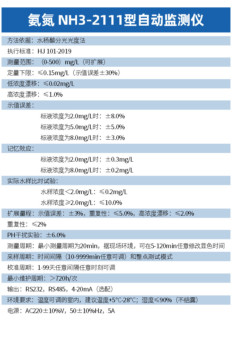 水樣和掩蔽劑混合后,以游離態(tài)的氨或銨離子等形式存在的氨氮在堿性環(huán)境和增敏劑存在的情況下,與水楊酸顯色試劑反應(yīng)生成一種帶色絡(luò)合物,分析儀檢測此顏色的變化,并把這種變化換算成氨氨值輸出來。生成的帶色絡(luò)合物量相當(dāng)于氨氮量。